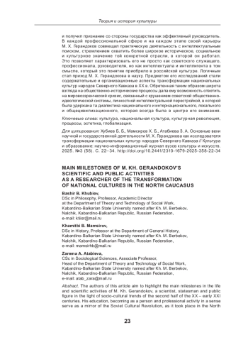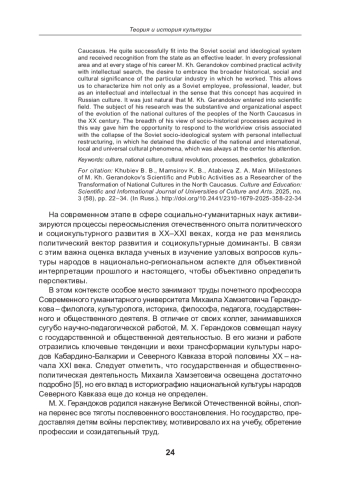 16. Герандоков М. Х. Проблемы преемственности культурного наследия // Известия Кабардино Балкарского государственного аграрного университета. 2015. № 1. С. 115-123.