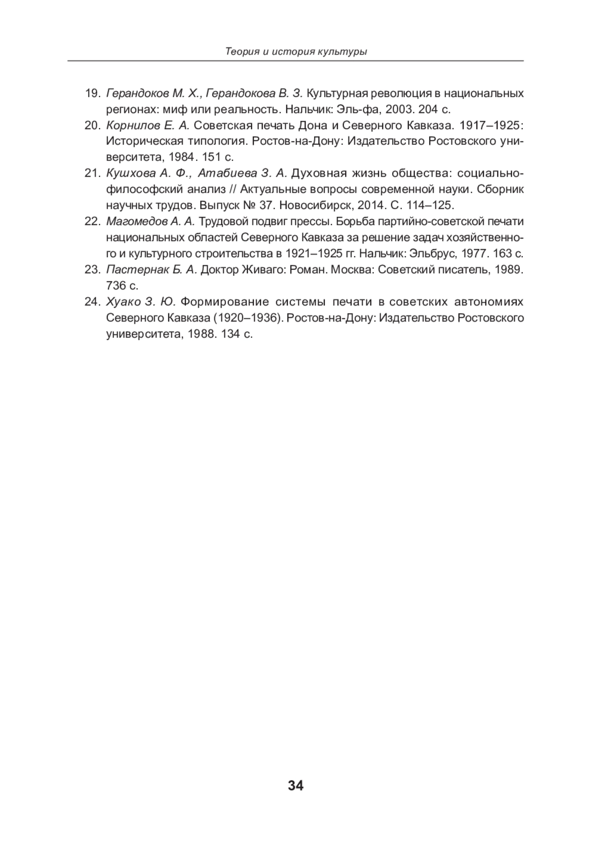 19. Герандоков М. Х., Герандокова В. З. Культурная революция в национальных регионах: миф или реальность. Нальчик: Эль-фа, 2003. 204 с. EDN: QOSPKV