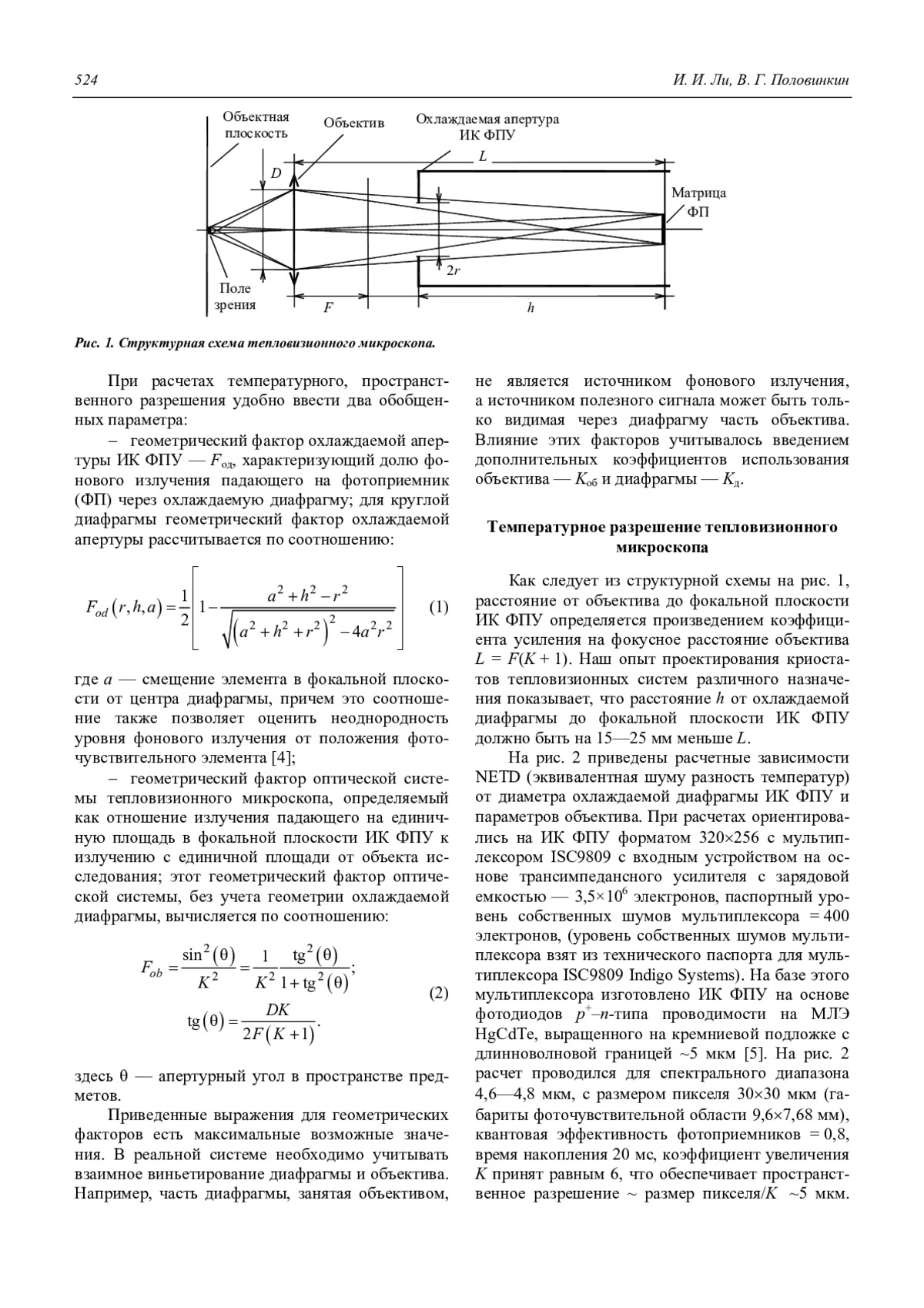 Ли И. И., Половинкин В. Г. Об оптимизации конструктивных параметров тепловизионного ИК-микроскопа 523