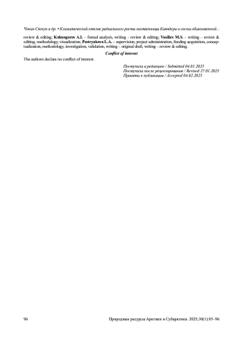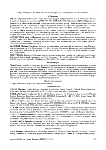 21. Khotcinskaia K.I., Sergeeva O.V., Kirdyanov A.V., et al. Climatic Response of Radial Growth of Larix cajanderi in Northern and Central Yakutia. Moscow University Biological Sciences Bulletin, 2024;79(2): 94-100.