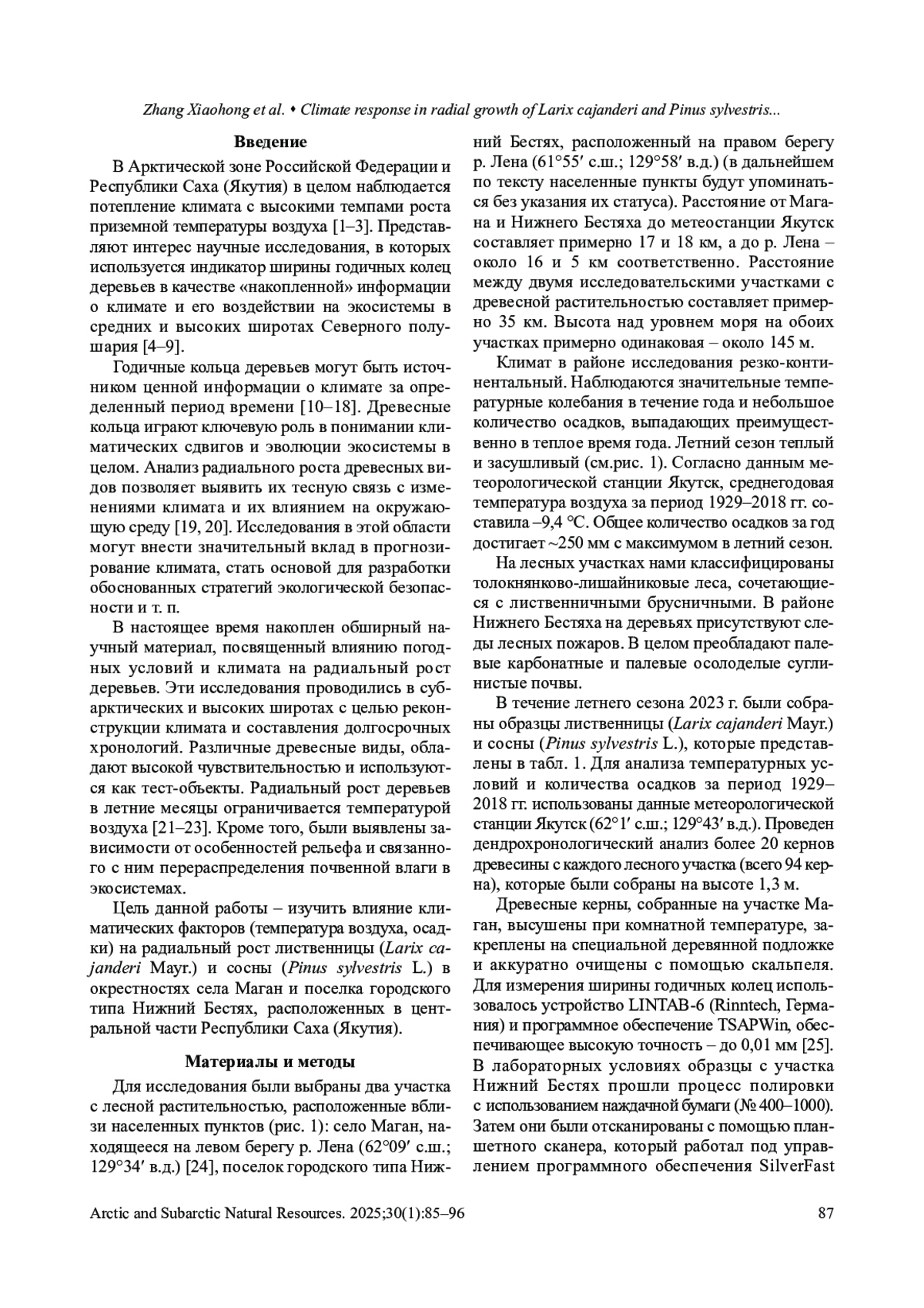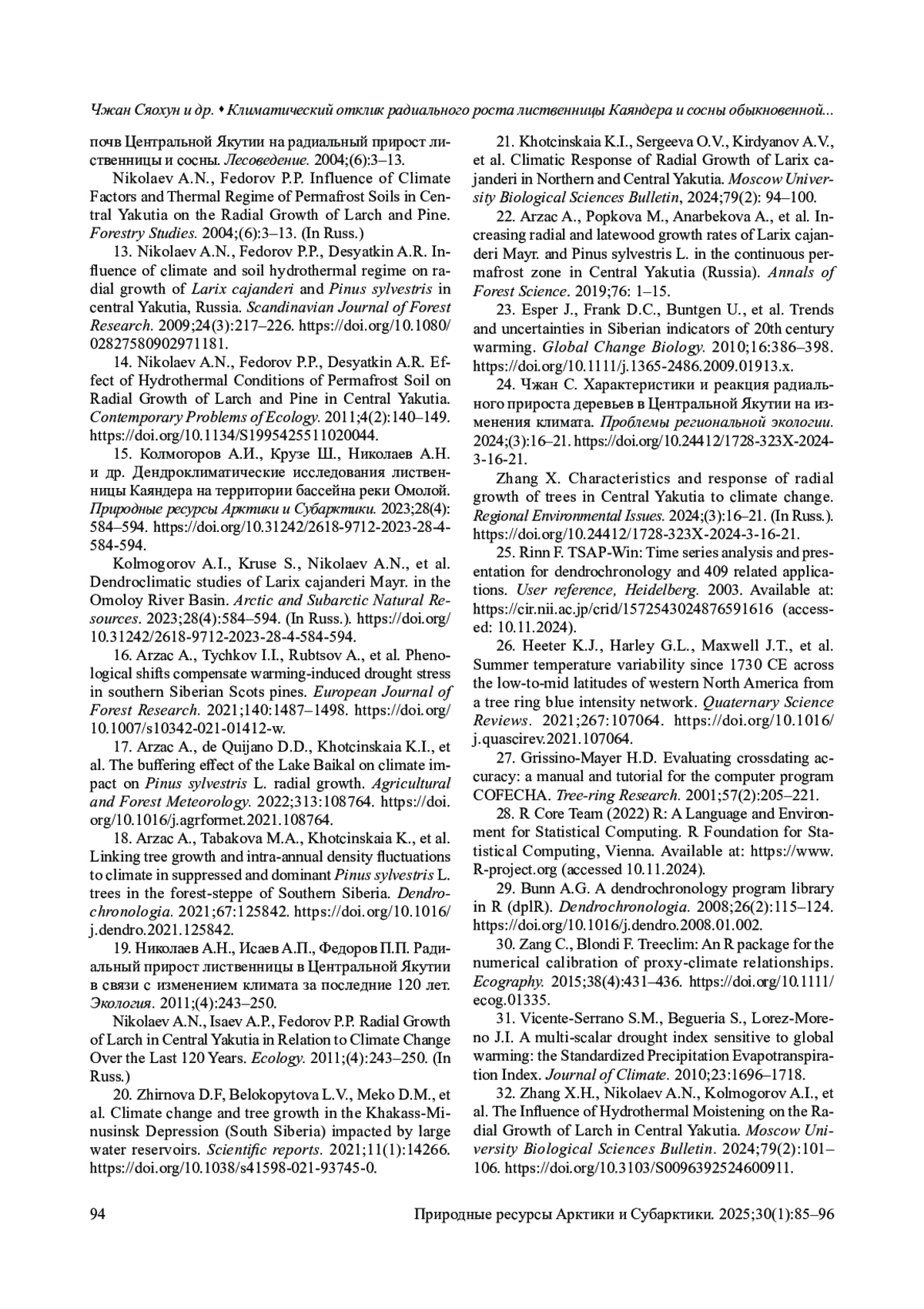 24. Чжан С. Характеристики и реакция радиального прироста деревьев в Центральной Якутии на изменения климата. Проблемы региональной экологии. 2024;(3):16-21. DOI: 10.24412/1728-323X-2024-3-16-21