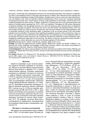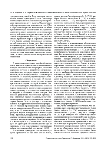 17. Григорьев С.Е., Мордосов И.И. Фауна и экология мелких млекопитающих бассейна нижнего течения реки Яна и прилегающих территорий в условиях антропогенного воздействия. Якутск: Издательский дом СВФУ; 2024. 156 с.