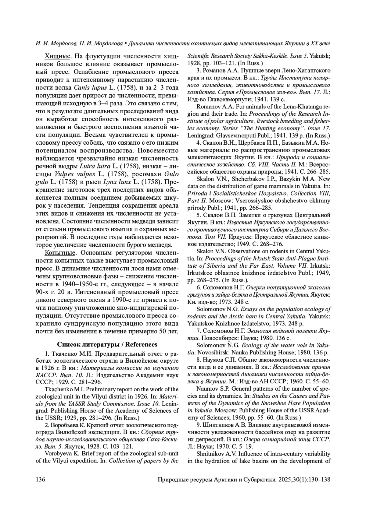 14. Мордосов И.И., Прокопьев Н.П. Млекопитающие таежной части Западной Якутии. Якутск: ГУП “Полиграфист” ЯНЦ СО РАН; 1997. 220 с.