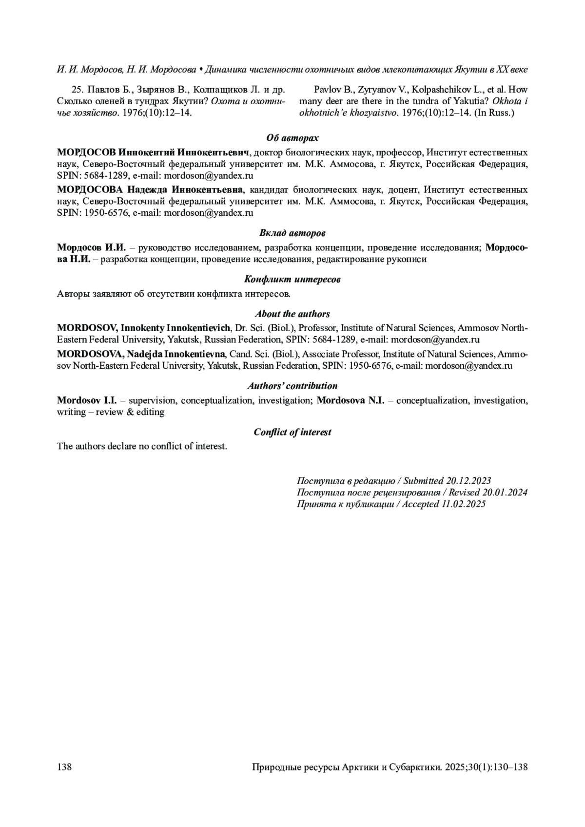 25. Павлов Б., Зырянов В., Колпащиков Л. и др. Сколько оленей в тундрах Якутии? Охота и охотничье хозяйство. 1976;(10):12-14.