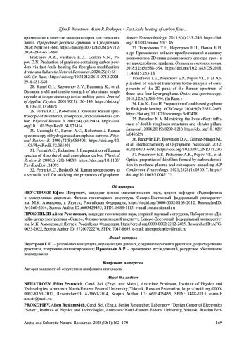 37. Neustroev E.P., Prokopiev A.R., Popov V.I., et al. Optical properties of thin films formed by carbon deposition in methane plasma and subsequent annealing AIP Conference Proceedings. 2021;2328(1):050017.