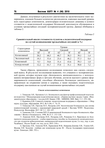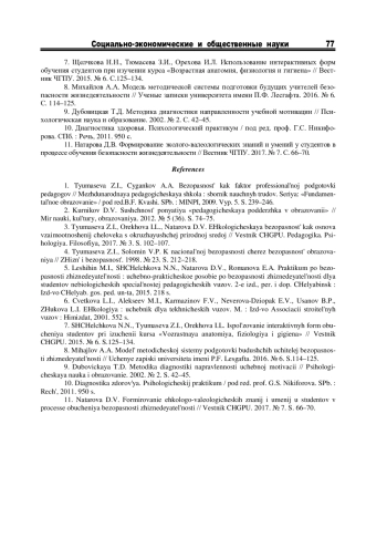 1. Тюмасева З.И., Цыганков А.А. Безопасность как фактор профессиональной подготовки педагогов//Международная педагогическая школа: сборник научных трудов. Серия: «Фундаментальное образование»/под ред.Б.Ф. Кваши. СПб.: МИНПИ, 2009. Вып. 5. С. 239-246. EDN: SFYVTH