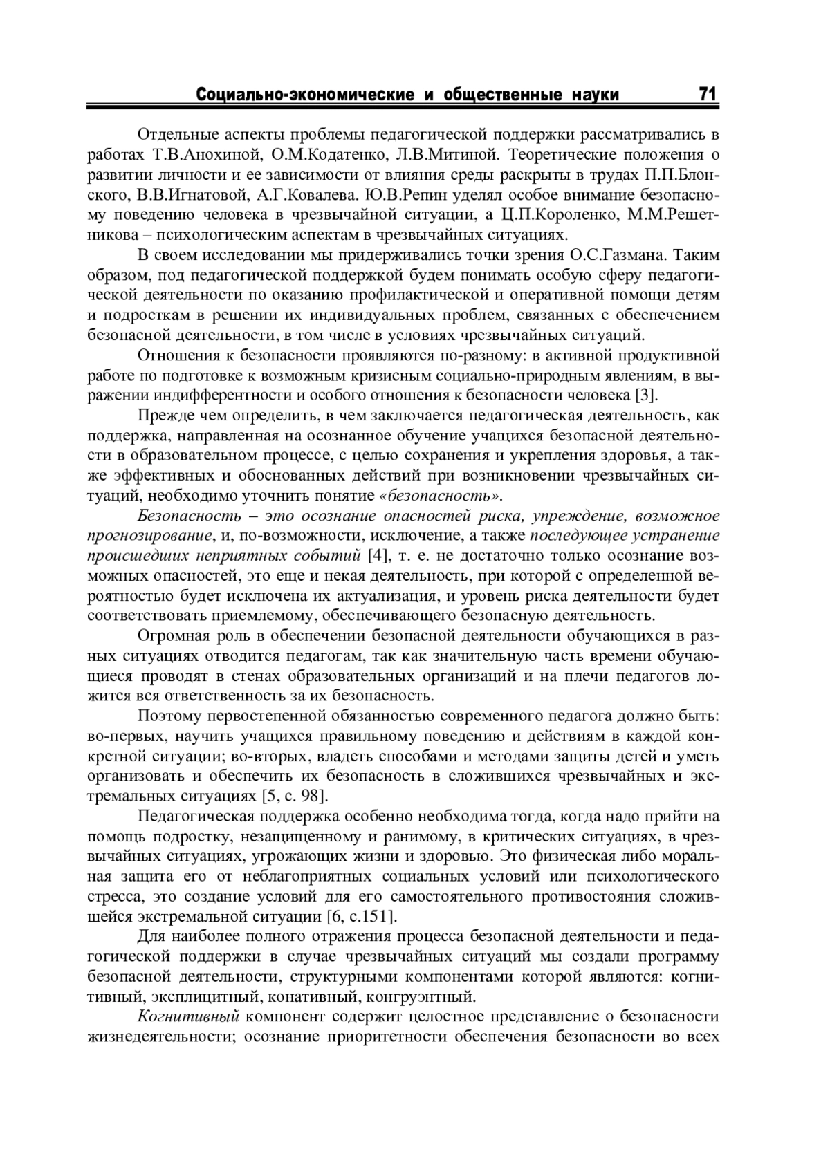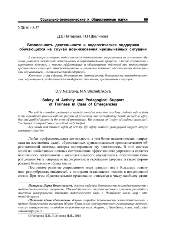 4. Тюмасева З.И., Соломин В.П. К национальной безопасности через безопасность образования//Жизнь и безопасность. 1998. № 23. С. 212-218. EDN: SJSDAB