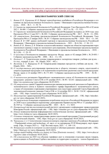 11. О техническом регламенте Евразийского экономического союза “О безопасности алкогольной продукции” [Электронный ресурс]: решение Совета ЕЭК от 05 декабря 2018 г. № 98 // ЕАЭС: официальный сайт. - URL: https://eec.eaeunion.org/(дата обращения: 04.05.2025).