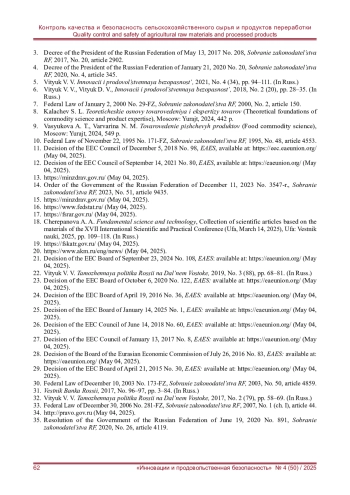 4. Об утверждении Доктрины продовольственной безопасности Российской Федерации: указ Президента РФ от 21 января 2020 г. № 20 // Собрание законодательства РФ. - 2020. - № 4. - Ст. 345.