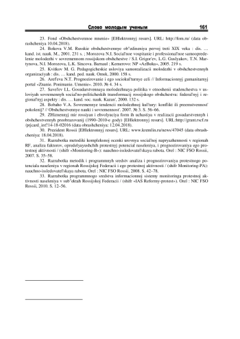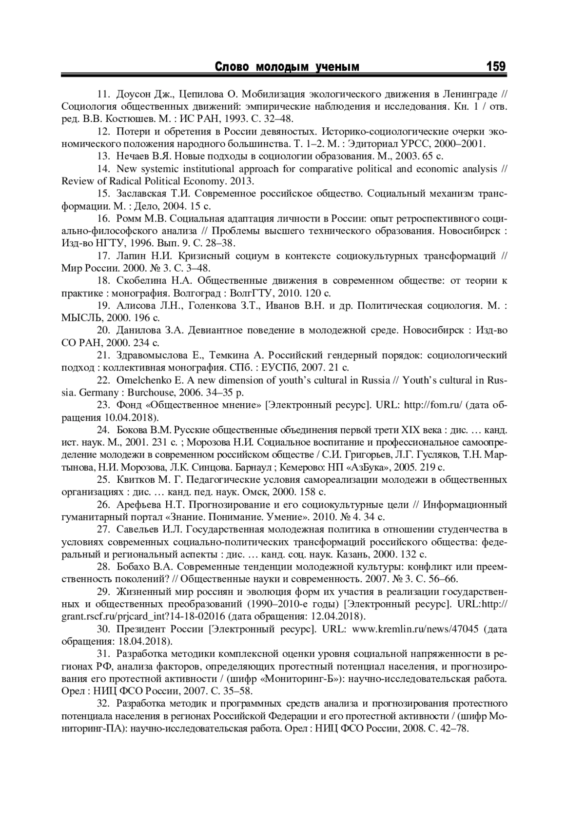 32. Разработка методик и программных средств анализа и прогнозирования протестного потенциала населения в регионах Российской Федерации и его протестной активности/(шифр Мониторинг-ПА): научно-исследовательская работа. Орел: НИЦ ФСО России, 2008. С. 42-78.