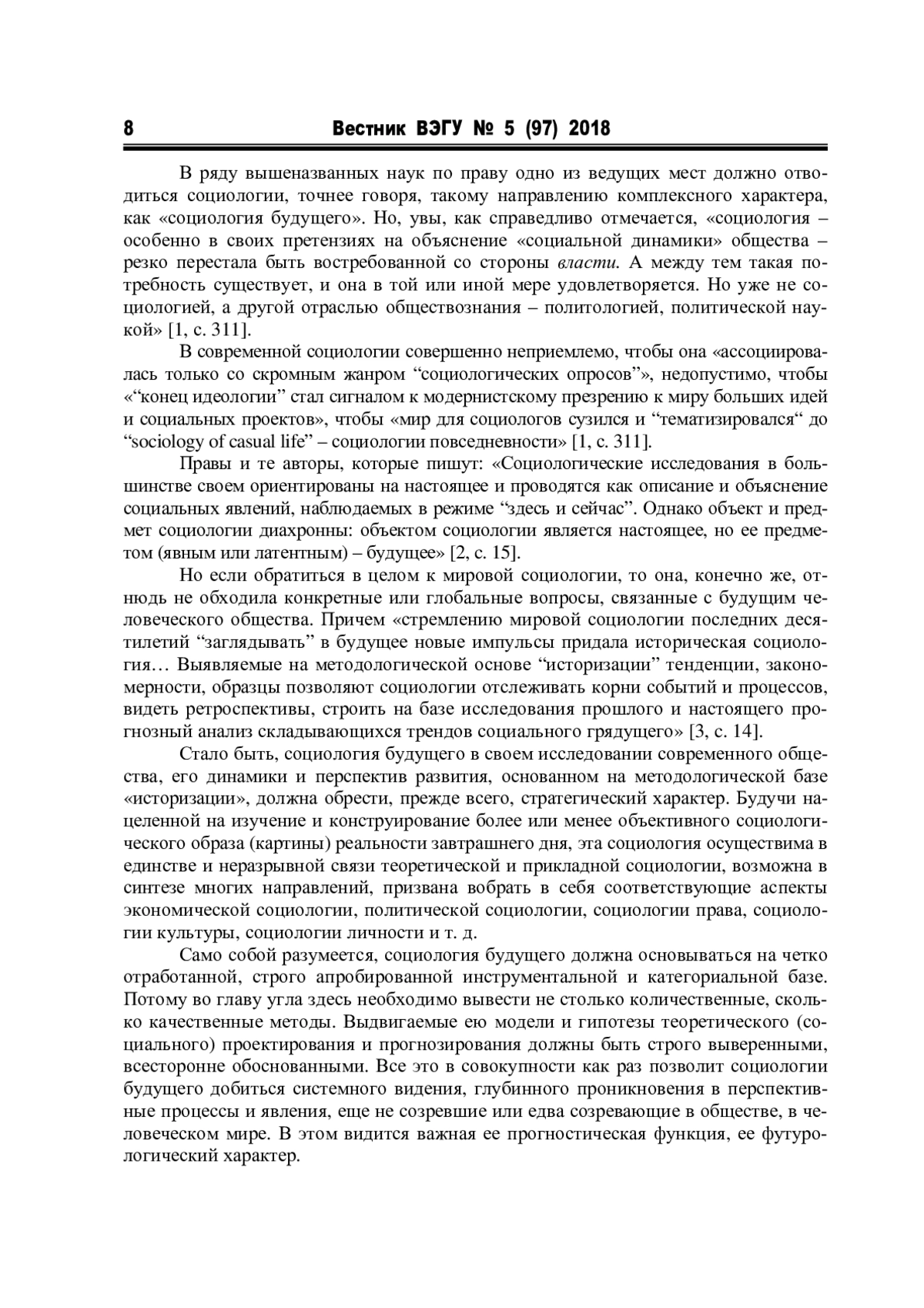 3. Романовский Н.В. Будущее как проблема современной социологии//Социологические исследования. 2015. № 11. С. 13-22. EDN: VBZYQR