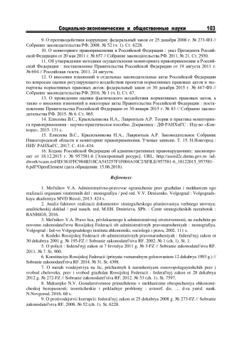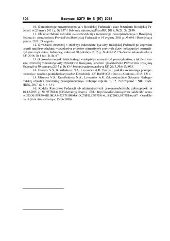 14. Елисеева В.С., Красильникова Н.А., Лаврентьев А.Р. Теория и практика мониторинга правоприменения: научно-практическое пособие. Дзержинск: ДФ РАНХиГС: Изд-во «Конкорд», 2015. 131 с.