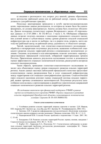 4. Бондаренко Л.В. Развитие сельских территорий России: оценки, мнения, ожидания // Социологические исследования. 2016. №3. С. 76-82. EDN: VXVZRR