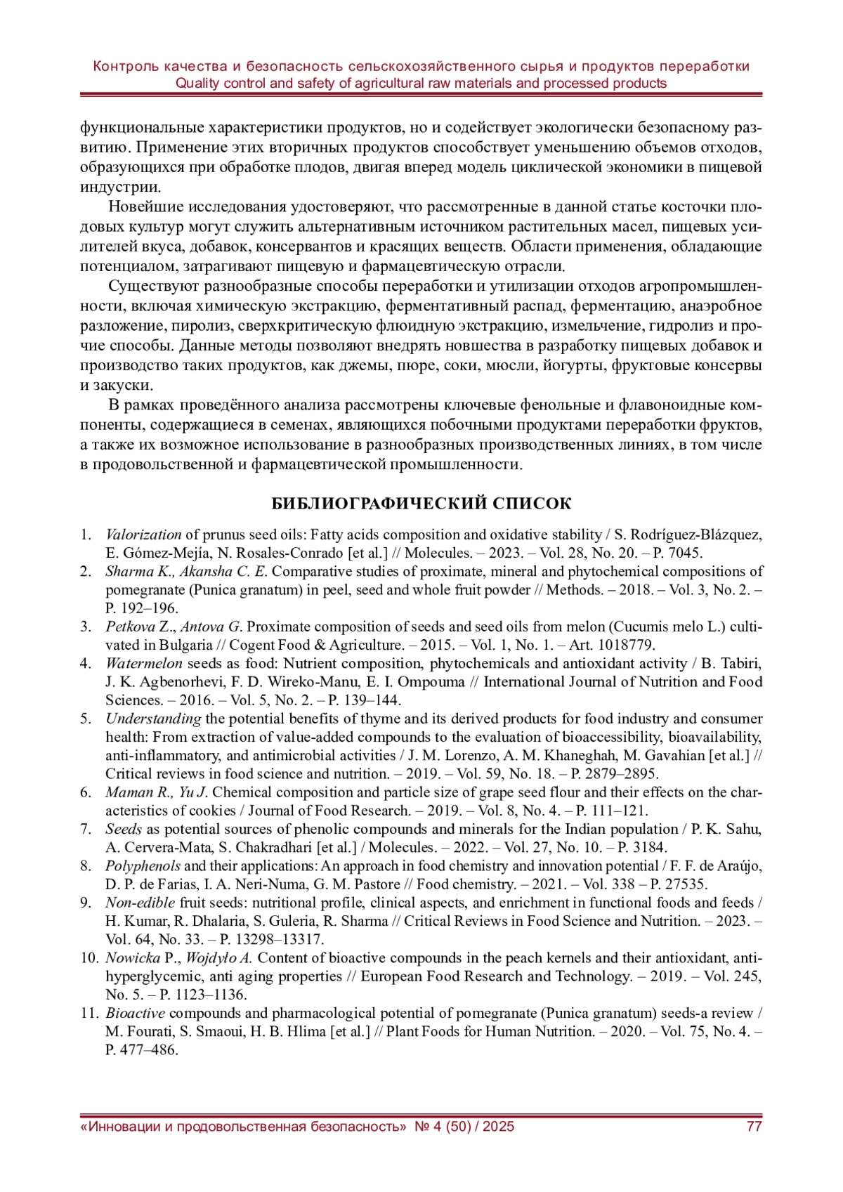 9. Non-edible fruit seeds: nutritional profile, clinical aspects, and enrichment in functional foods and feeds / H. Kumar, R. Dhalaria, S. Guleria, R. Sharma // Critical Reviews in Food Science and Nutrition. - 2023. - Vol. 64, No. 33. - P. 13298-13317.