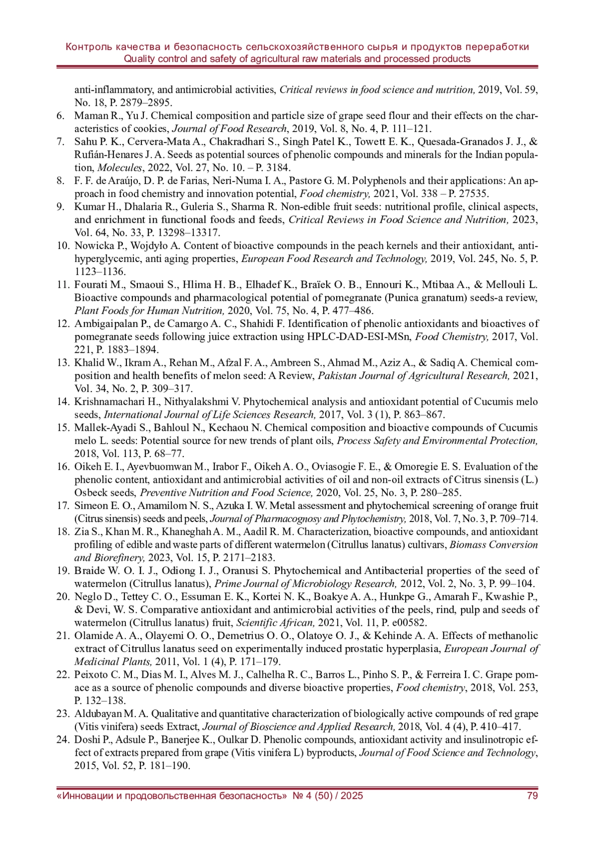 23. Aldubayan M. A. Qualitative and quantitative characterization of biologically active compounds of red grape (Vitis vinifera) seeds Extract // Journal of Bioscience and Applied Research. - 2018. - Vol. 4 (4). - P. 410-417.