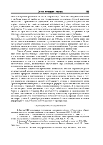 1. Врачев О.И. Молодежная культура как социальная проблема // Современное обществознание: методологические проблемы, исследования. Свердловск, 1990. С. 117-126.
