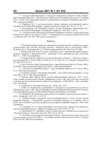 14. Государственная программа Российской Федерации “Развитие Северо-Кавказского Федерального округа” на период до 2025 г. // Утверждена постановлением Правительства РФ от 15 апреля 2014 г. № 309 // СПС “КонсультантПлюс”.