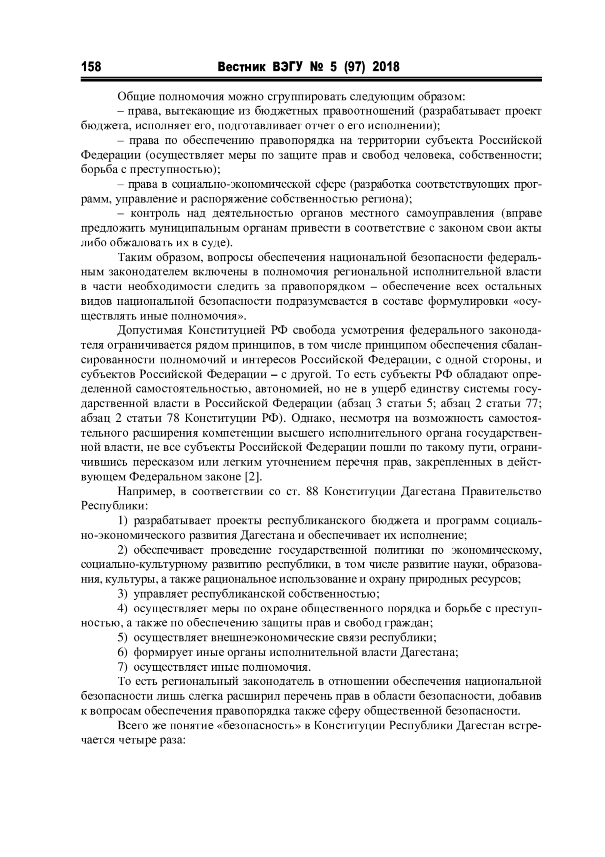 12. Вишняков В.Г. О методологических основах правового регулирования проблем безопасности Российской Федерации // Журнал российского права. 2015. № 9. С. 27-39.