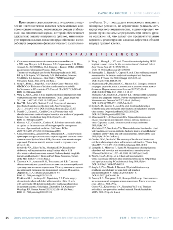 16. Wen X., Gao S., Feng J. et al. Chest-wall reconstruction with a customized titanium-alloy prosthesis fabricated by 3D printing and rapid prototyping. J Cardiothoracic Surg 2018;13(1):4. DOI: 10.1186/s13019-017-0692-3.