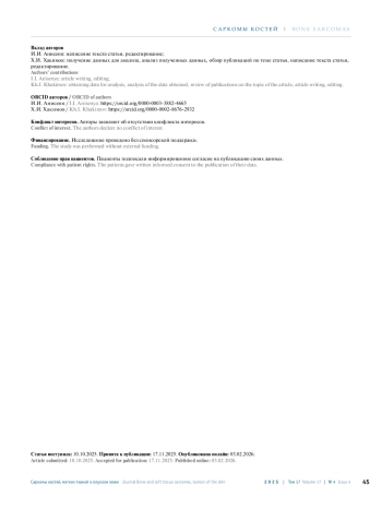 6. Gamboa A.C., Gronchi A., Cardona K. Soft-tissue sarcoma in adults: an update on the current state of histiotype-specific management in an era of personalized medicine. CA Cancer J Clin 2020;70(3):200-29. DOI: 10.3322/caac.21605.