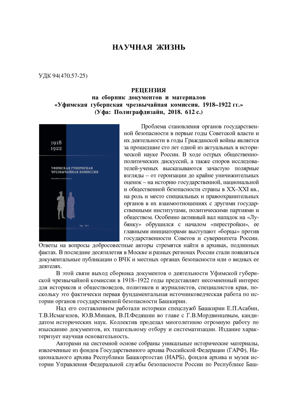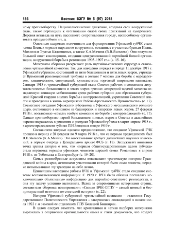 Проблема становления органов государственной безопасности в первые годы Советской власти и их деятельности в годы Гражданской войны является за прошедшие сто лет одной из актуальных в исторической науке России. В ходе острых общественнополитических дискуссий, а также споров исследователей-ученых высказываются зачастую полярные взгляды – от героизации до крайне уничижительных оценок – на историю государственной, национальной и общественной безопасности страны в ХХ–ХХI вв., на роль и место специальных и правоохранительных органов в их взаимоотношениях с другими государственными институтами, политическими партиями и обществом. Особенно активный вал нападок на «Лубянку» обрушился с началом «перестройки», ее главными инициаторами выступают «борцы» против государственности Советов и суверенитета России. Ответы на вопросы добросовестные авторы стремятся найти в архивах, подлинных фактах. В последние десятилетия в Москве и разных регионах России стали появляться документальные публикации о ВЧК и местных органах безопасности или о видных ее деятелях.