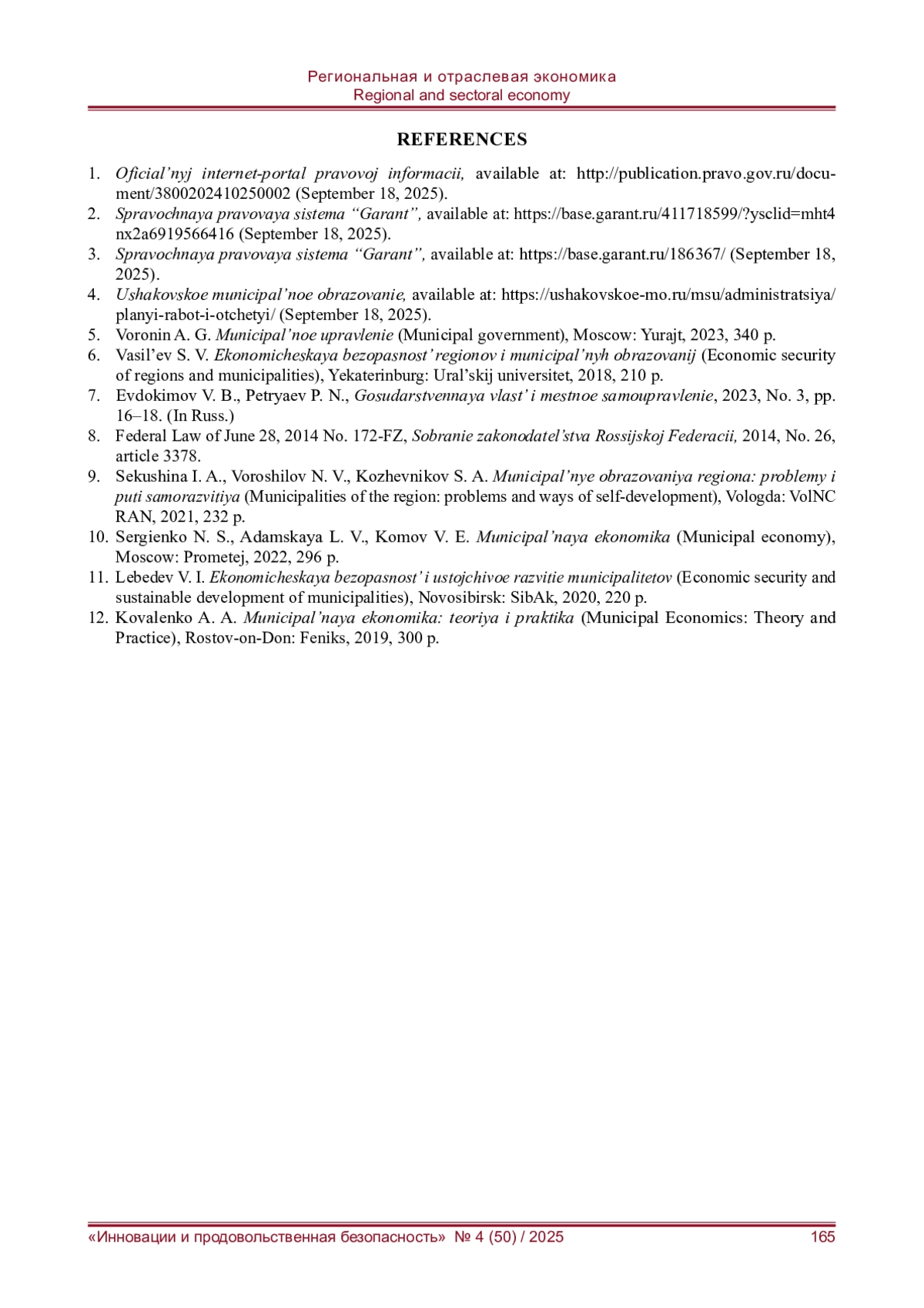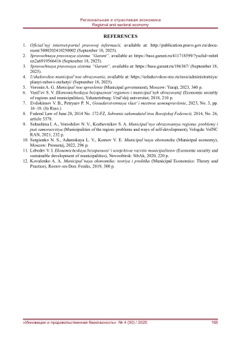 11. Лебедев В. И. Экономическая безопасность и устойчивое развитие муниципалитетов. - Новосибирск: СибАк, 2020. - 220 с.