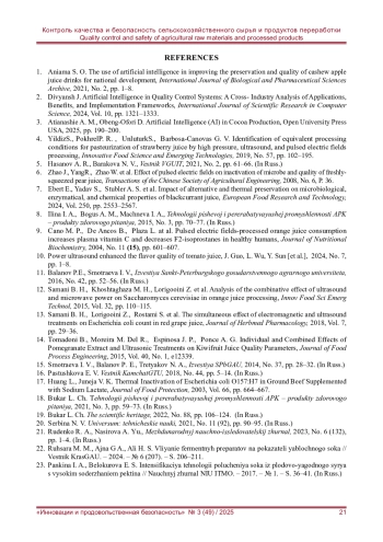 1. Aniama S. O. The use of artificial intelligence in improving the preservation and quality of cashew apple juice drinks for national development // International Journal of Biological and Pharmaceutical Sciences Archive. - 2021. - No. 2. - Р. 1-8.