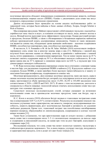 11. Fernandes S. S., Salas-Mellado M. de las M. Development of mayonnaise with substitution of oil or egg yolk by the addition of chia (Salvia hispanica L.) mucilage // Journal of Food Science. - 2018. - No. 83 (1). - P. 74-83.
