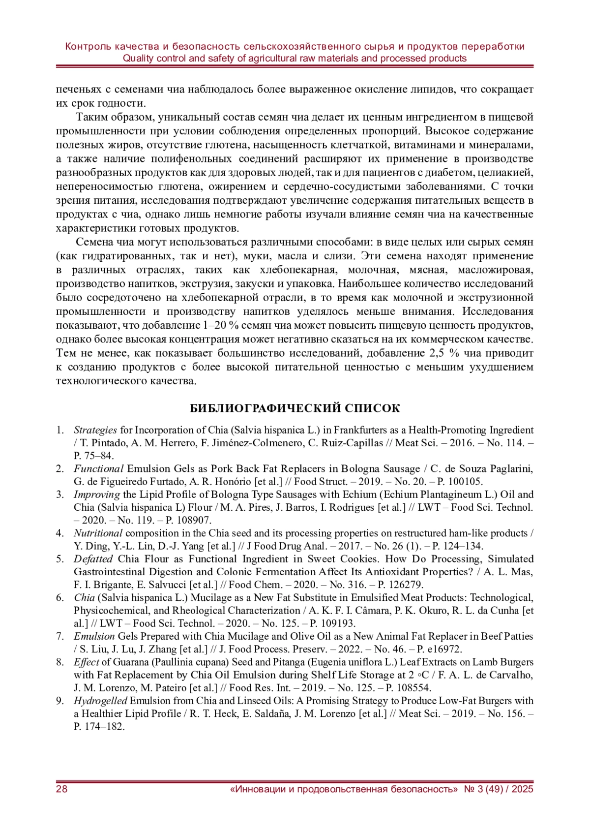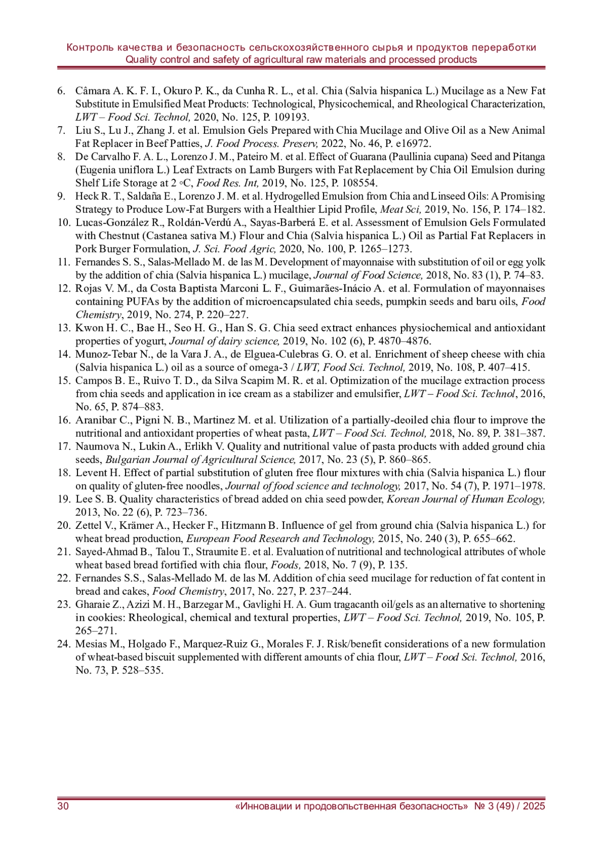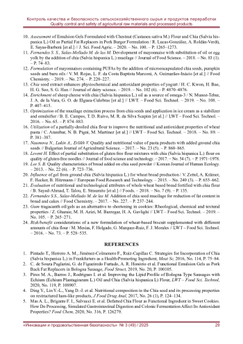7. Emulsion Gels Prepared with Chia Mucilage and Olive Oil as a New Animal Fat Replacer in Beef Patties / S. Liu, J. Lu, J. Zhang [et al.] // J. Food Process. Preserv. - 2022. - No. 46. - P. e16972.
