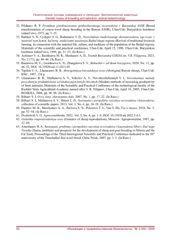 52. Пилданов Р. П. Породное преобразование грубошерстного овцеводства в Бурятской АССР. - Улан-Удэ: Бурятское книжное издательство, 1975. - С. 5-25.