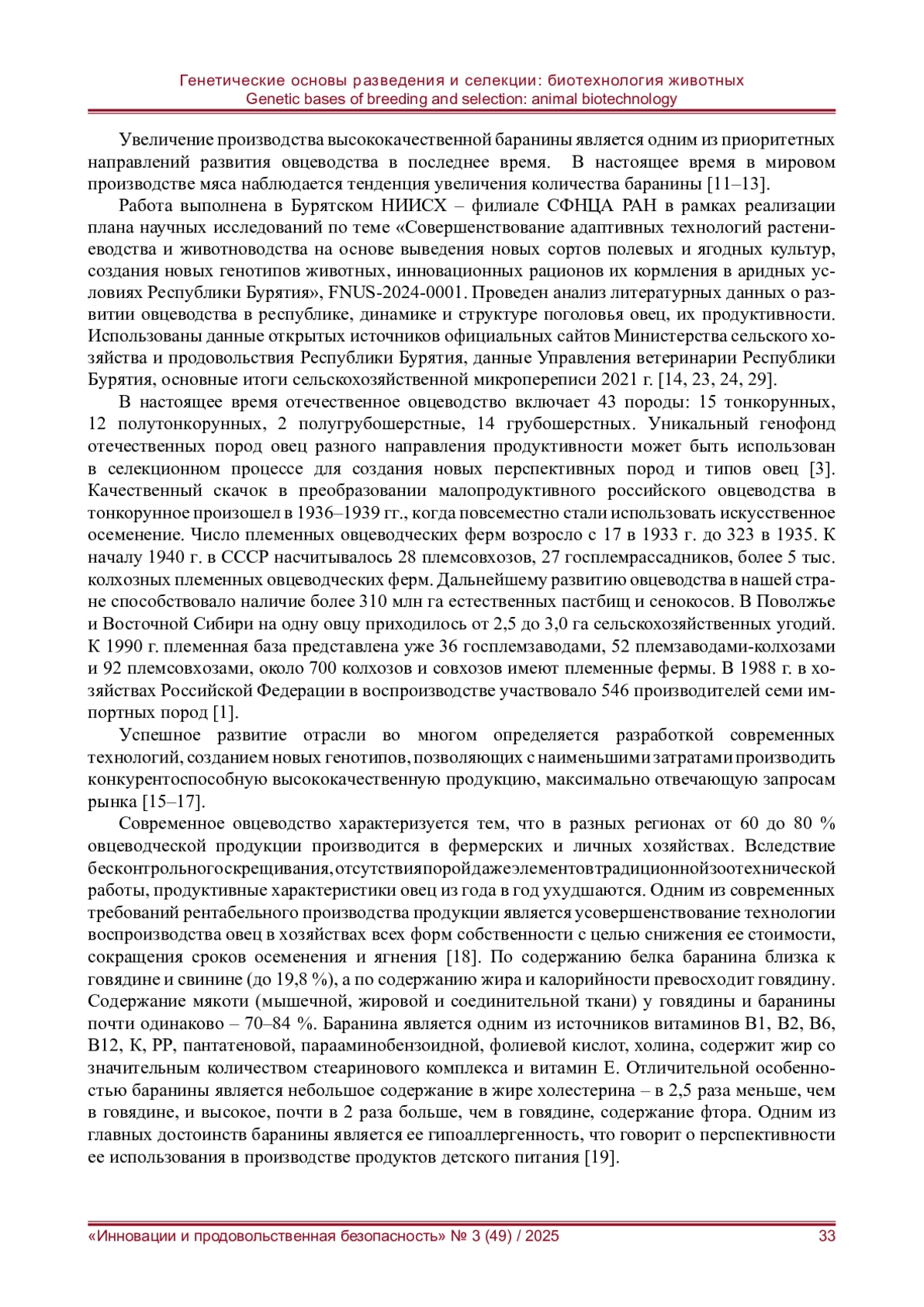 18. Селионова М. И., Багиров В. А. Современное состояние овцеводства России и его научное обеспечение // Сельскохозяйственный журнал. - 2014. - Т. 3, № 7. - С. 2-9. EDN: TBIUHT