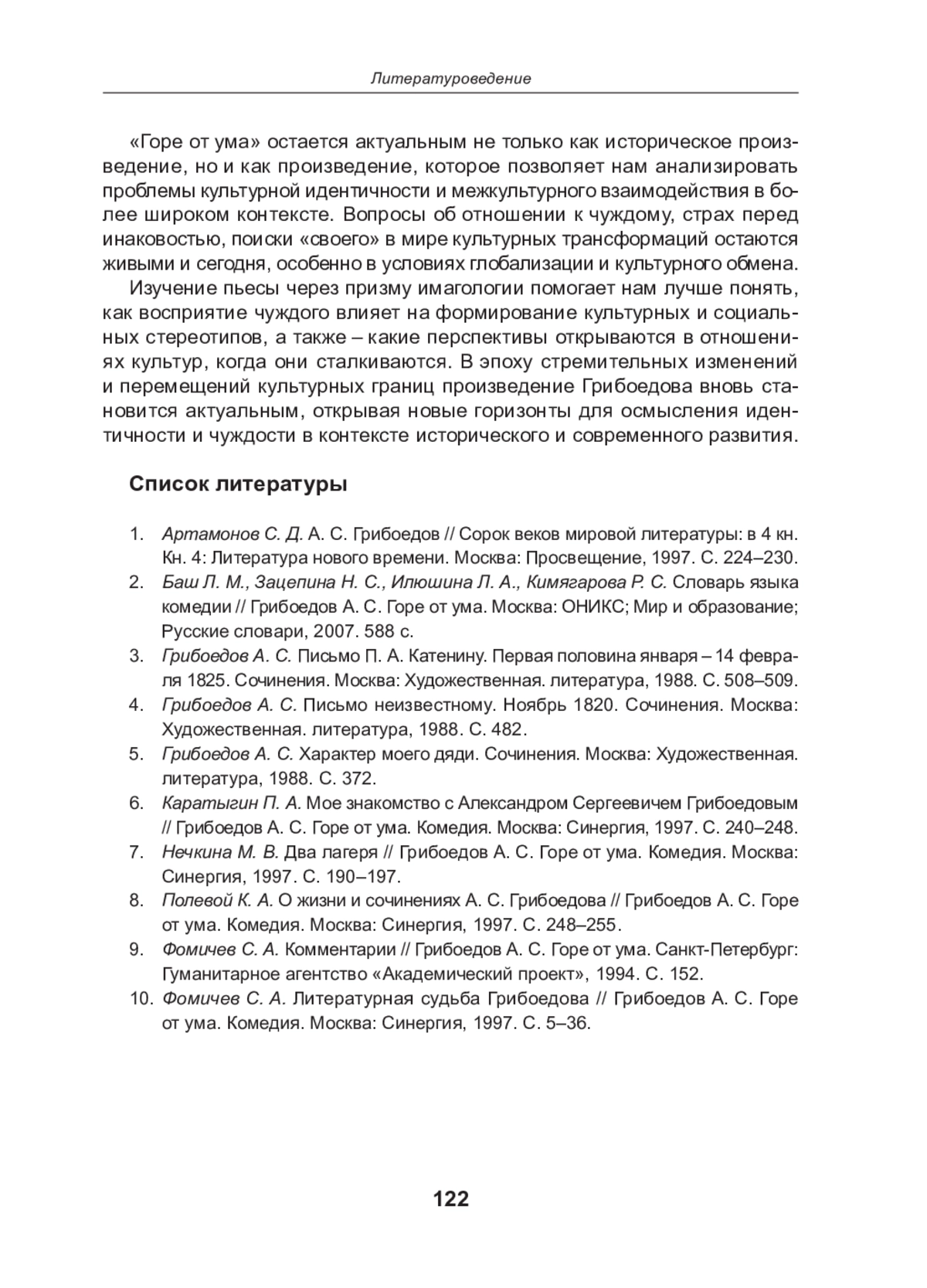 10. Фомичев С. А. Литературная судьба Грибоедова // Грибоедов А. С. Горе от ума. Комедия. Москва: Синергия, 1997. С. 5-36.