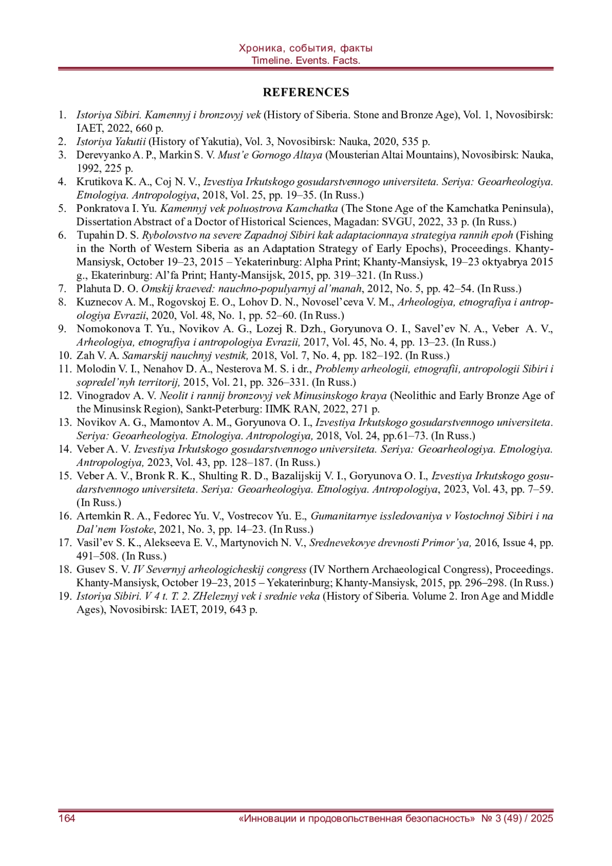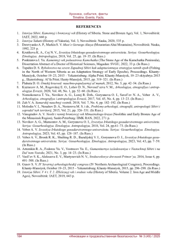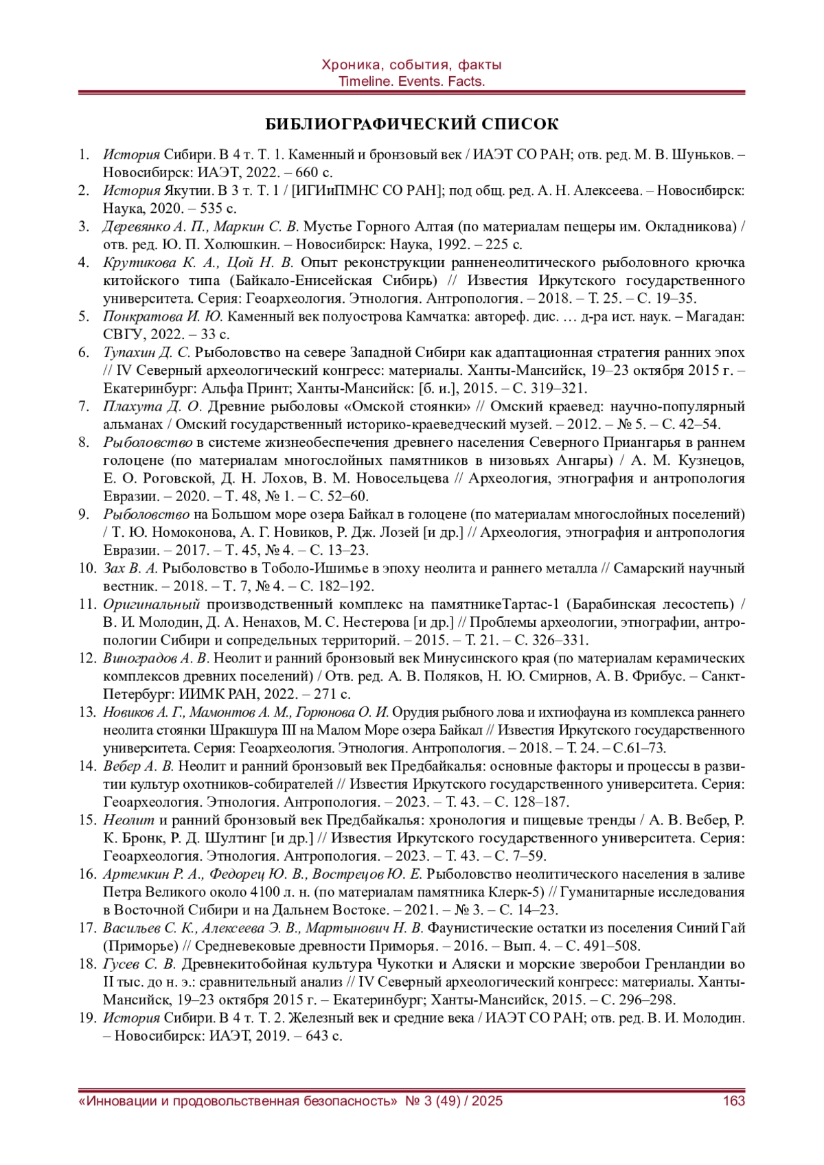 14. Вебер А. В. Неолит и ранний бронзовый век Предбайкалья: основные факторы и процессы в развитии культур охотников-собирателей // Известия Иркутского государственного университета. Серия: Геоархеология. Этнология. Антропология. - 2023. - Т. 43. - C. 128-187. EDN: FMZIZD