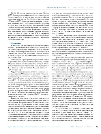 7. Dixon B.C., Tomlinson J.L., Fox D.B. et al. Surgical decompression, with or without adjunctive therapy, for palliative treatment of primary vertebral osteosarcoma in dogs Vet Comp Oncol 2019;17(4):472-8. DOI: 10.1111/vco.12508.