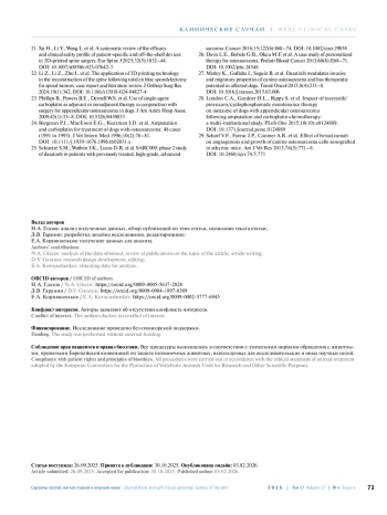 1. Boerman I., Selvarajah G.T., Nielen M. et al. Prognostic factors in canine appendicular osteosarcoma - a meta-analysis BMC Vet Res 2012;15:8:56. DOI: 10.1186/1746-6148-8-56.