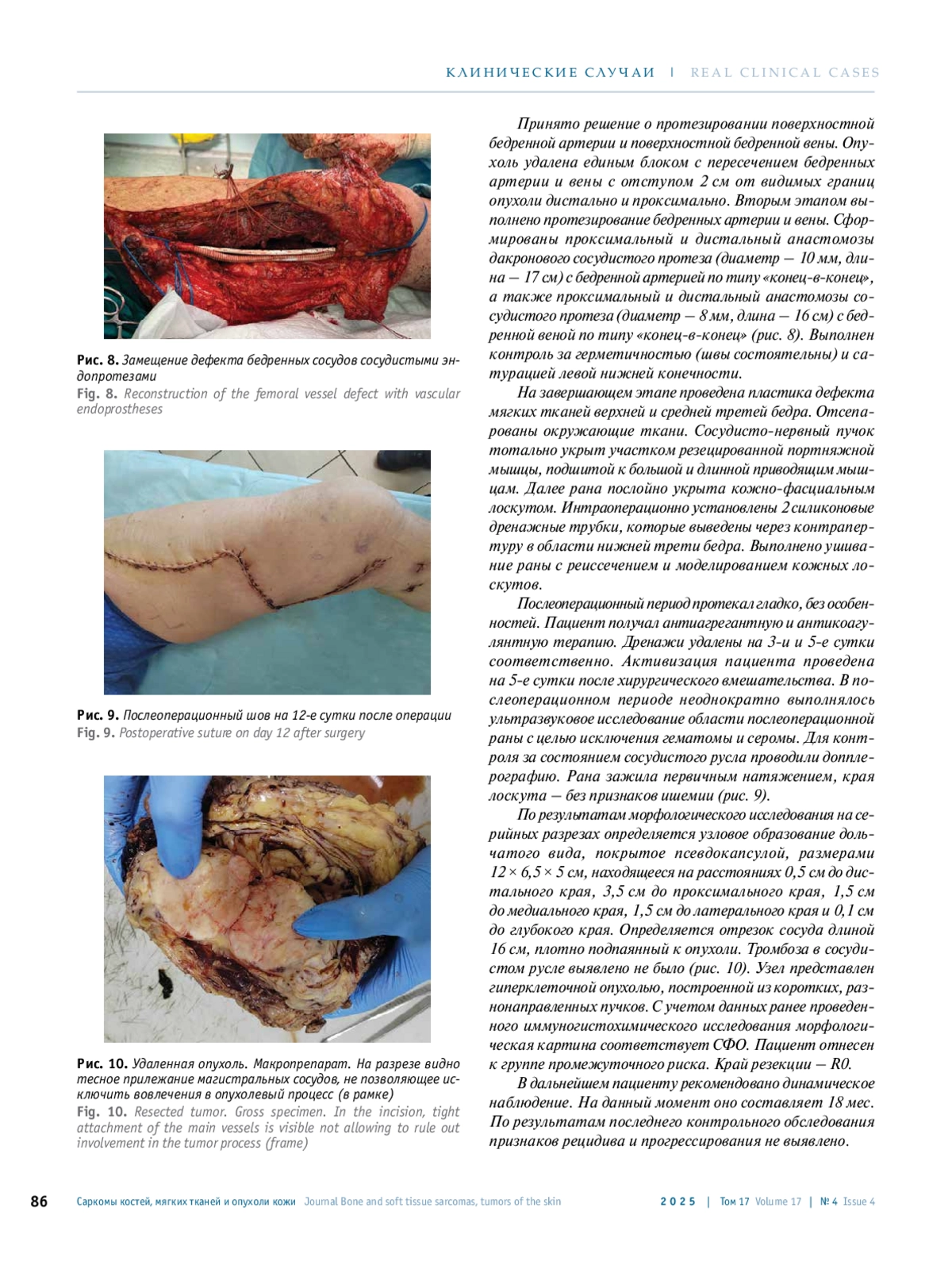 Введение. При неорганных забрюшинных саркомах с инвазией в магистральные сосуды выполнение обширных мультивисцеральных резекций с реконструкций сосудов является технической необходимостью. Несмотря на успехи онкососудистой хирургии, аспекты планирования и выполнения таких хирургических вмешательств остаются недостаточно изученными.