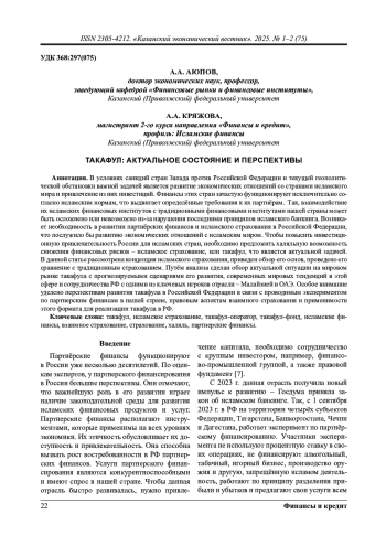 10. Nikonova T., Yusupova L., Nugaev F. Islamic financial institutions in the european economy // Journal of Economics and Economic Education Research. 2016. №17 (2). С. 144-149.