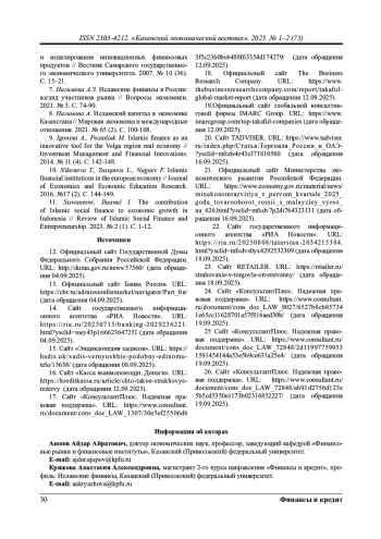 9. Igonina A., Postaliuk M. Islamic finance as an innovative tool for the Volga region real economy //Investment Management and Financial Innovations. 2014. № 11 (4). С. 142-148.