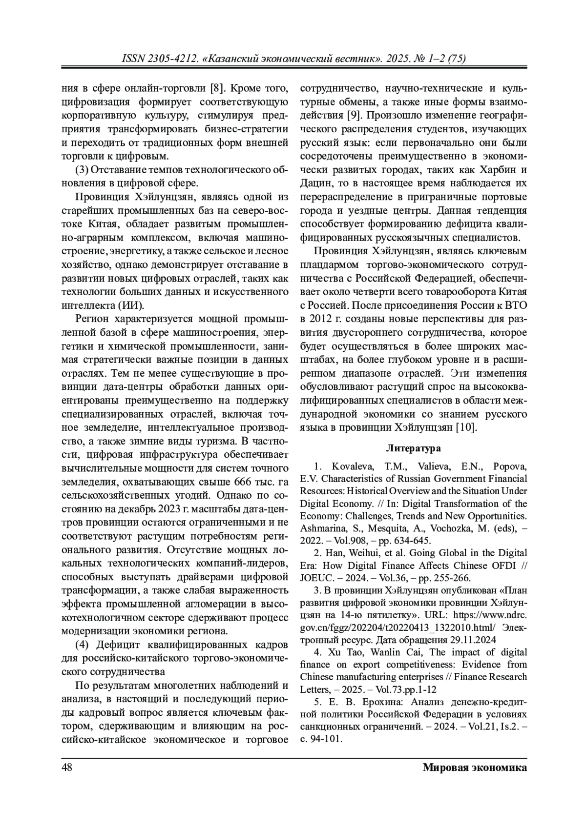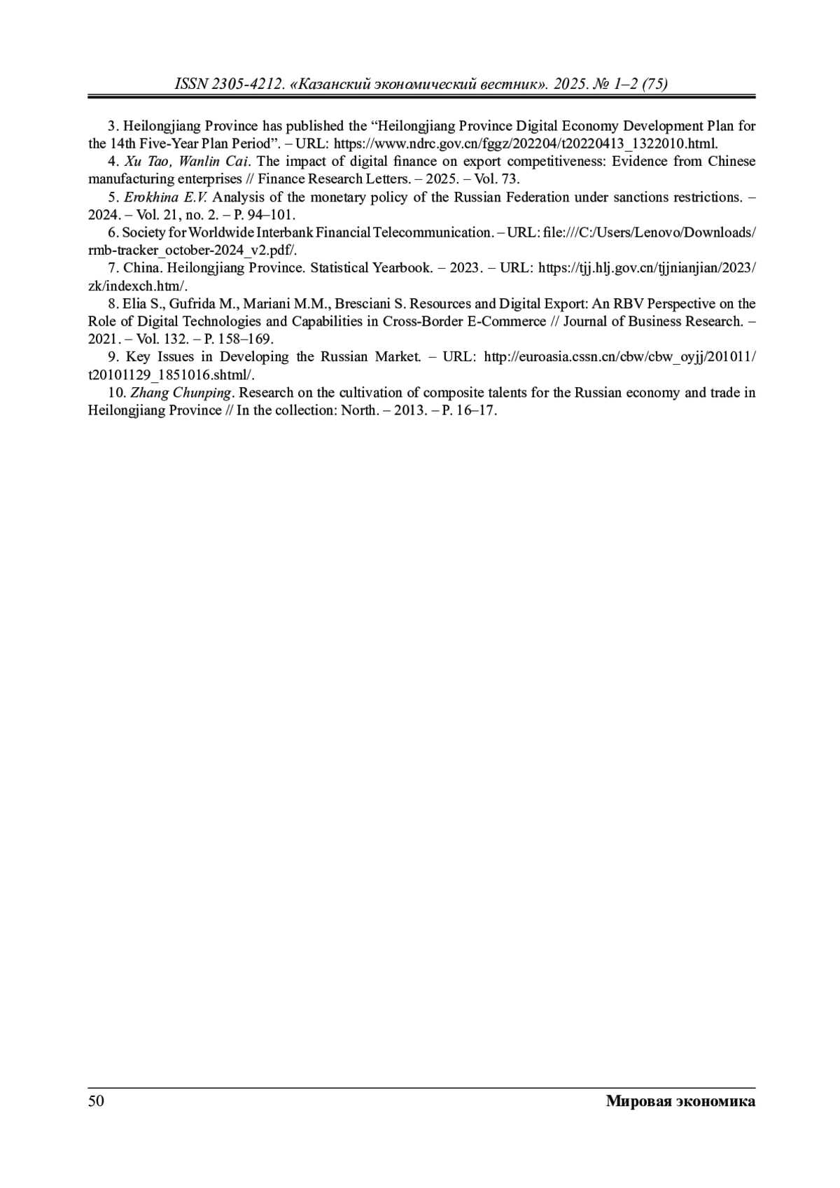 4. Xu Tao, Wanlin Cai, The impact of digital finance on export competitiveness: Evidence from Chinese manufacturing enterprises // Finance Research Letters, - 2025. - Vol.73.pp.1-12