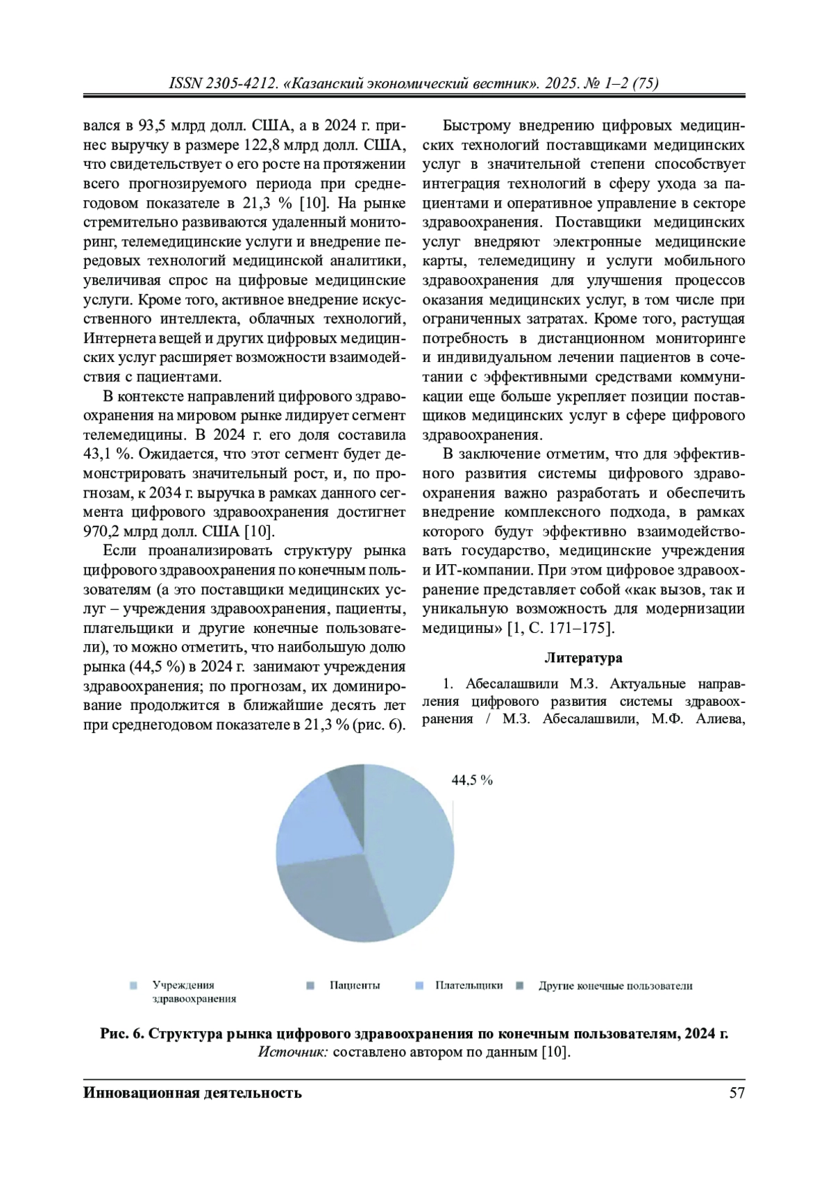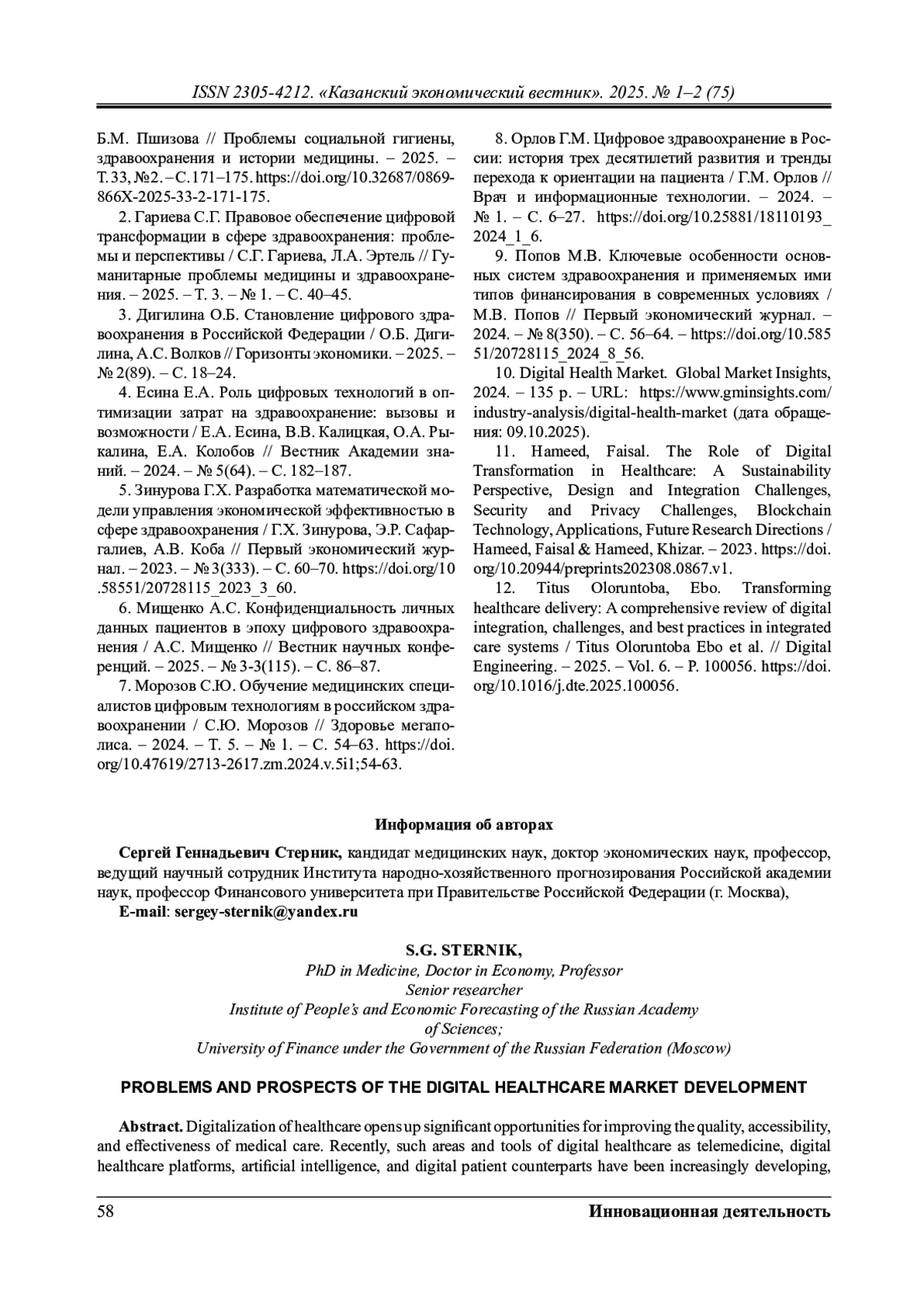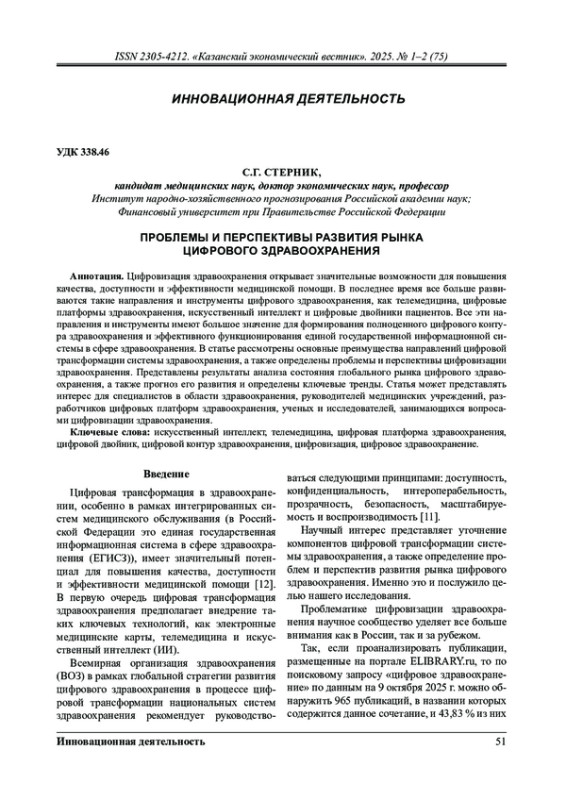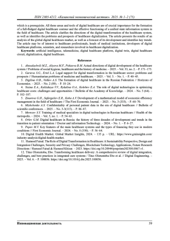 3. Дигилина О.Б. Становление цифрового здравоохранения в Российской Федерации / О.Б. Дигилина, А.С. Волков // Горизонты экономики. - 2025. - № 2(89). - С. 18-24.
