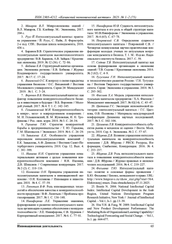 4. Баранов В.В. Стратегическое управление интеллектуальным капиталом высокотехнологичного предприятия / В.В. Баранов, А.В. Зайцев // Креативная экономика. 2019. № 12 (36). С. 72-86.