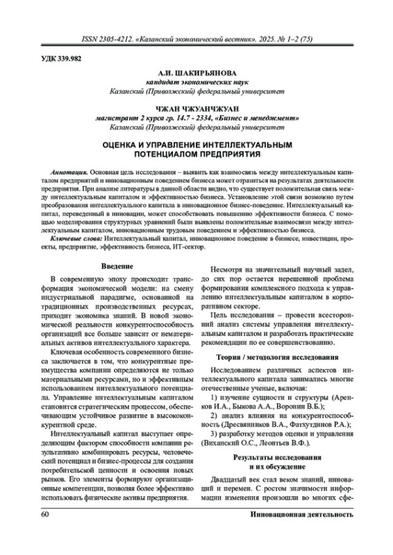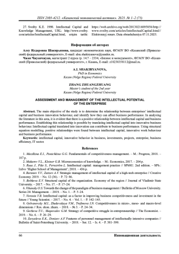 Основная цель исследования – выявить как взаимосвязь между интеллектуальным капиталом предприятий и инновационным поведением бизнеса может отразиться на результатах деятельности предприятия. При анализе литературы в данной области видно, что существует положительная связь между интеллектуальным капиталом и эффективностью бизнеса. Установление этой связи возможно путем преобразования интеллектуального капитала в инновационное бизнес-поведение. Интеллектуальный капитал, переведенный в инновации, может способствовать повышению эффективности бизнеса. С помощью моделирования структурных уравнений были выявлены положительные взаимосвязи между интеллектуальным капиталом, инновационным трудовым поведением и эффективностью бизнеса.