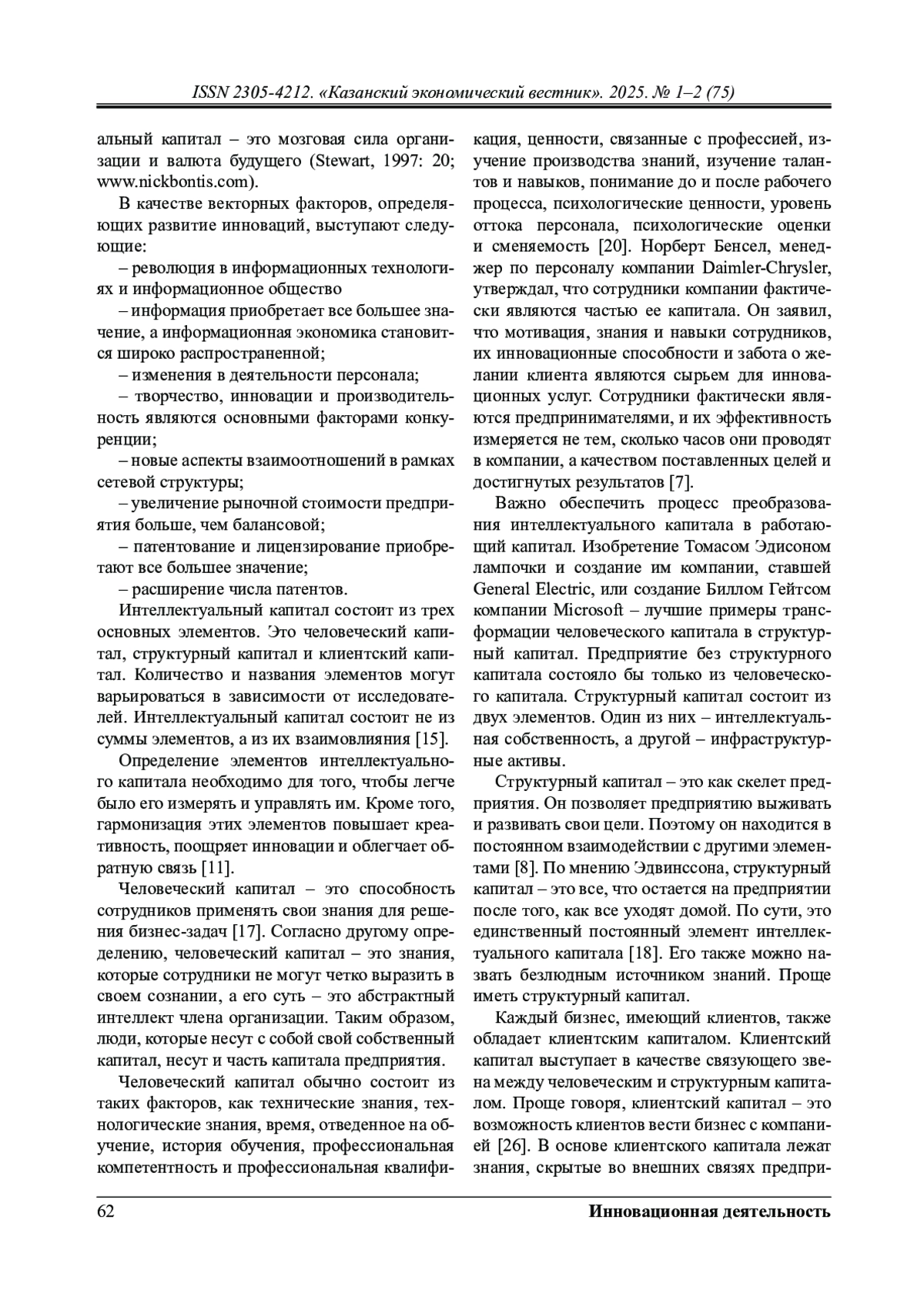 16. Никифорова Ю.В. Сущность интеллектуального капитала и его роль в общей структуре капитала / Ю.В.Никифорова // Экономика и управление.2017. № 4 (65). С. 67-78.