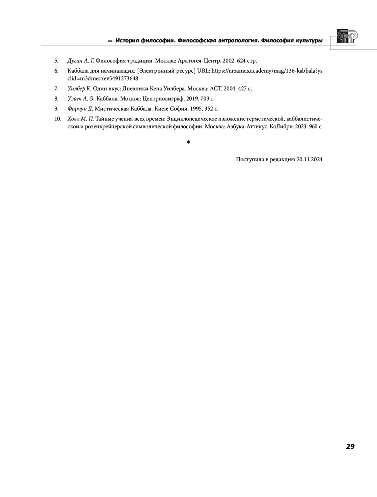 8. Уэйт А. Э. Каббала. Москва: Центрполиграф. 2019. 703 с.
