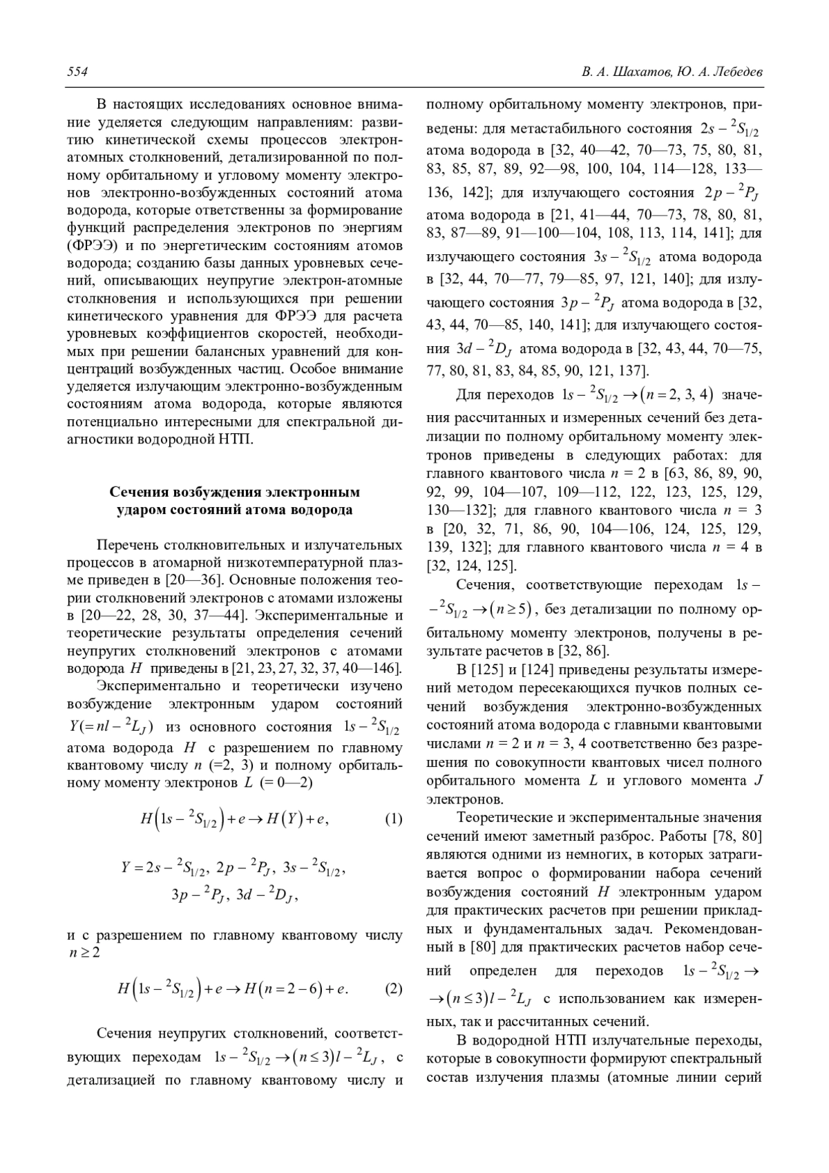 Шахатов В. А., Лебедев Ю. А. Анализ данных по сечениям возбуждения электронных состояний и ионизации атома водорода электронным ударом (обзор) 553