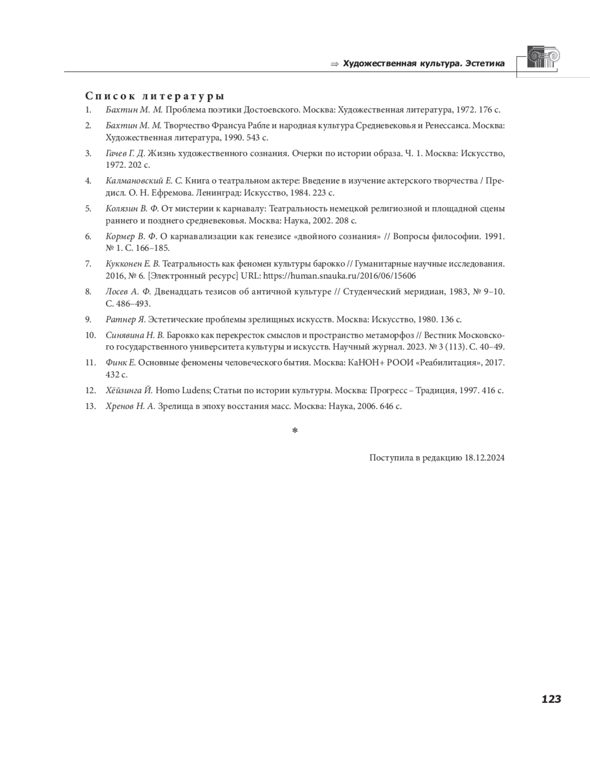 6. Кормер В. Ф. О карнавализации как генезисе «двойного сознания» // Вопросы философии. 1991.