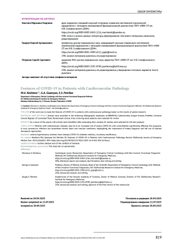 Пациенты с сердечно-сосудистыми заболеваниями могут быть подвержены повышенному риску тяжёлого течения COVID-19, при этом сопутствующая патология способна значительно повлиять на прогноз. В свою очередь, коронавирусная инфекция может привести к обострению хронических болезней сердца и сосудов, что подчёркивает значимость своевременной диагностики и применения оптимальных терапевтических подходов.