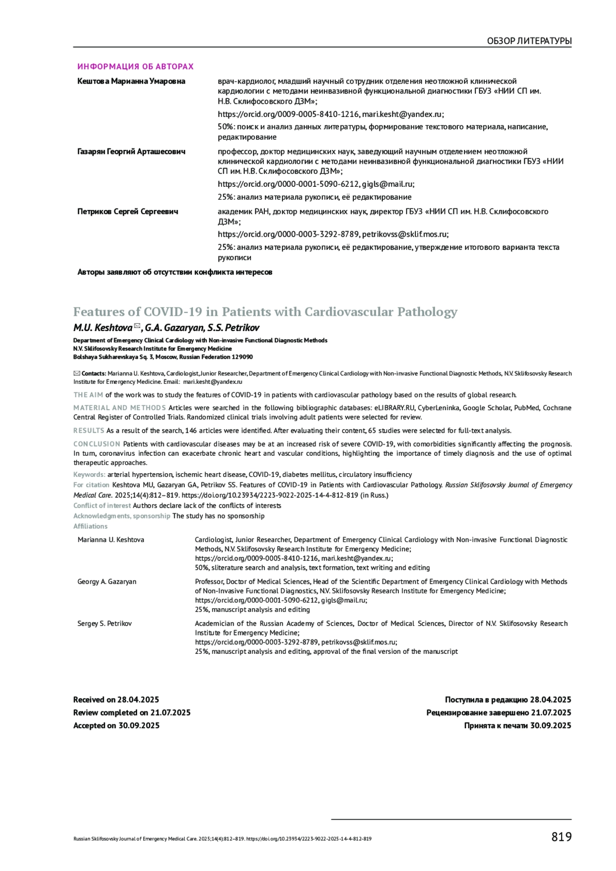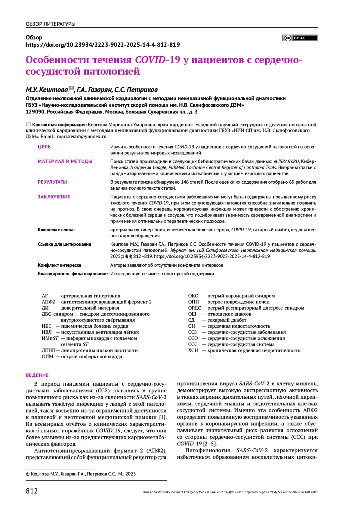 56. Ермохина Л.В., Берикашвили Л.Б., Ядгаров М.Я., Чаус Н.И., Баева А. А., Мельникова Н.С., и др. Оценка влияния сердечно-сосудистых заболеваний и их медикаментозной терапии на летальность пациентов с COVID-19, получавших лечение в отделении реанимации. Анестезиология и реаниматология. 2022;(1):36-43. DOI: 10.17116/anaesthesiology202201136