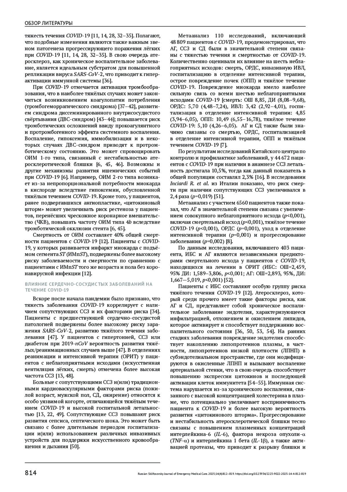 15. Бубнова М.Г., Аронов Д.М. COVID-19 и сердечно-сосудистые заболевания: от эпидемиологии до реабилитации. Пульмонология. 2020;30(5):688-699. DOI: 10.18093/0869-0189-2020-30-5-688-699