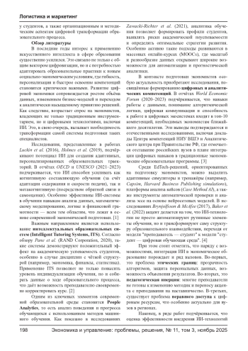 Развитие цифровой экономики сопровождается существенным изменением требований к квалификации специалистов. Экономист XXI века должен не только владеть традиционными аналитическими методами, но и уметь работать в цифровой среде: применять интеллектуальные инструменты анализа данных, участвовать в цифровых экосистемах и принимать решения на основе комплексной обработки информации.